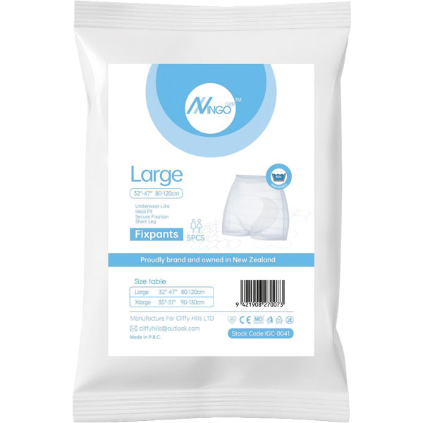Designed for secure and comfortable fixation of incontinence pads, IngoCare Fixpants offer an underwear-like fit, short-leg design, and strong, secure fixation to keep pads in place.