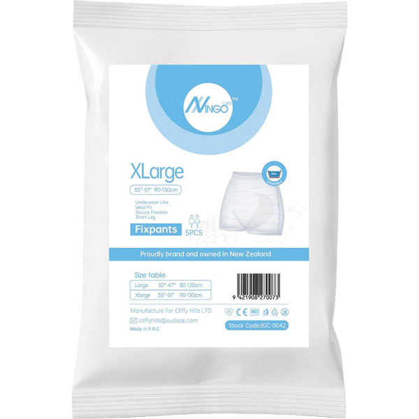 Designed for secure and comfortable fixation of incontinence pads, IngoCare Fixpants offer an underwear-like fit, short-leg design, and strong, secure fixation to keep pads in place.