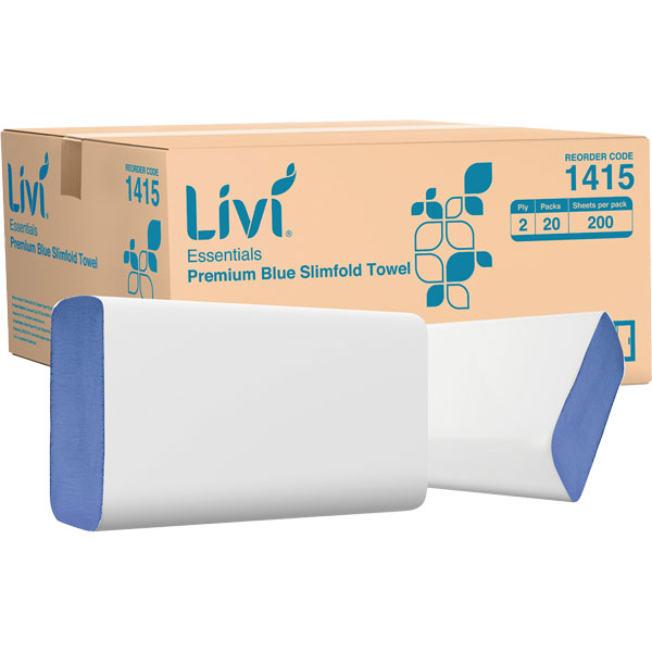 LIVI ESSENTIALS SLIMFOLD PAPER TOWEL 2 PLY 200 SHEET PACK BLUE CARTON 20