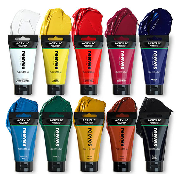 REEVES PREMIUM ACRYLIC PAINT 75ML TUBE ASSORTED PACK 10