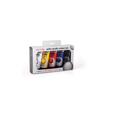 REEVES PREMIUM ACRYLIC PAINT 75ML TUBE ASSORTED PACK 5