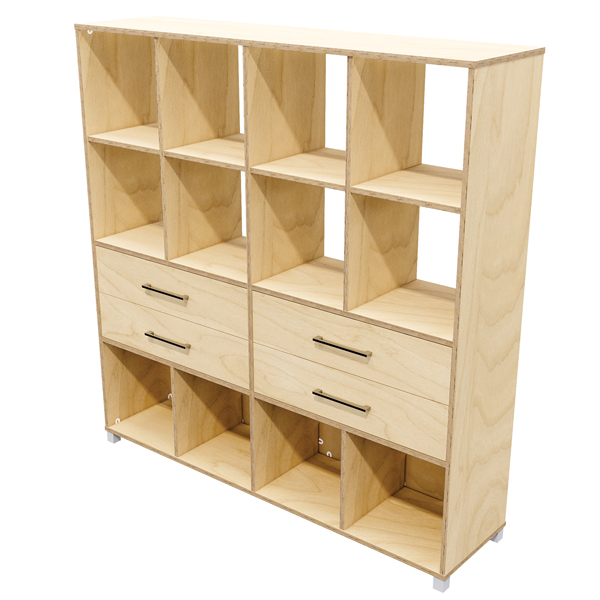ZEALAND CUBBY HOLE BOOKCASE 12 CUBE 4 DRAWERS W800 X D400 X H1650MM PREMIUM PLY